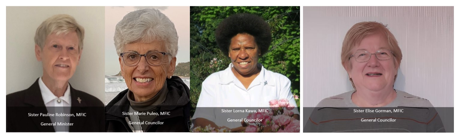 Sr. Pauline Robinson, General Minister, Sr. Marie Puleo, Sr. Lorna Kawa, Sr. Elise Gorman General Councilors.